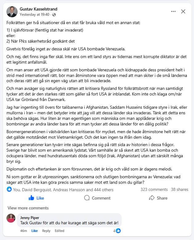 Svar från Per Hanson i ämnet USA angriper Venezuela