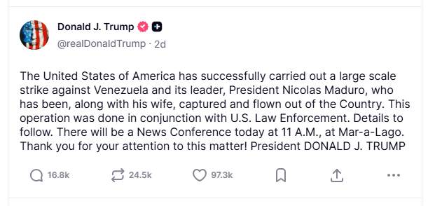 Svar från Editor i ämnet USA angriper Venezuela