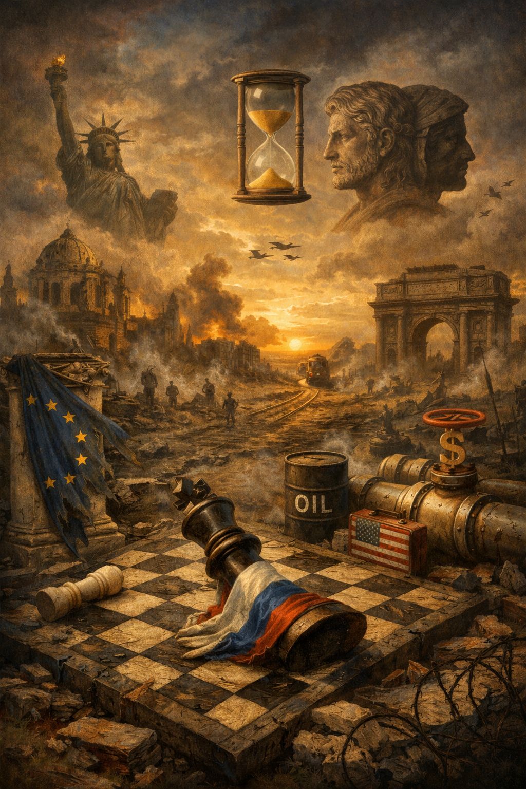 Europeiska unionen, som en gång drömde om att vara ett fredsprojekt, har reducerats till ett framskjutet skyttevärn. Den är varken Europa eller union längre, utan ett administrativt bihang till Washingtons strategiska vilja. Bryssel talar om värden, men agerar som logistikcentral. Unionens språk är moraliskt, dess funktion militär, dess konsekvens ekonomiskt självmord.